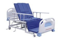 手动单摇护理床采用钢制框架与ABS材料,通过手摇杆可调节背部0-80°角度,满足患者坐卧姿势转换需求。两侧配备可拆卸护栏防止跌落,尾部设防滑脚轮便于移动定位。床体承重达200kg,适用于术后康复、长期卧床等需体位调整的照护场景。手动机械结构无需电源,操作简单且维护成本低,兼具安全性与经济性,是家庭及基层医疗机构的实用护理设备。