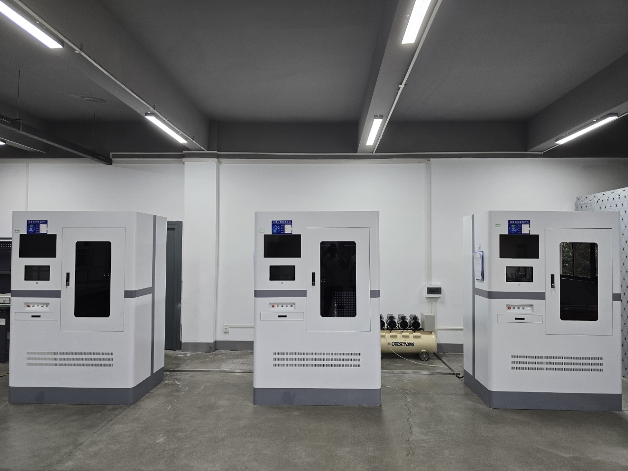 配有电池测试一体化系统设备。可按照GB31241开展圆柱型电池、方型电池、纽扣电池的高温外部短路、低气压、温度循环、跌落、挤压、重物冲击、热滥用、燃烧喷射八项试验。