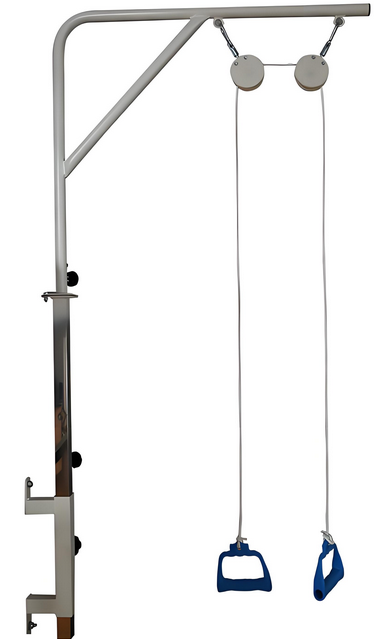 一种用于康复训练的设备,通过滑轮组与吊环的联动设计,辅助上肢完成多角度运动,配合牵引功能可缓解颈椎及肩部僵硬,主要用于肩关节活动范围训练、关节牵引和肌肉训练。