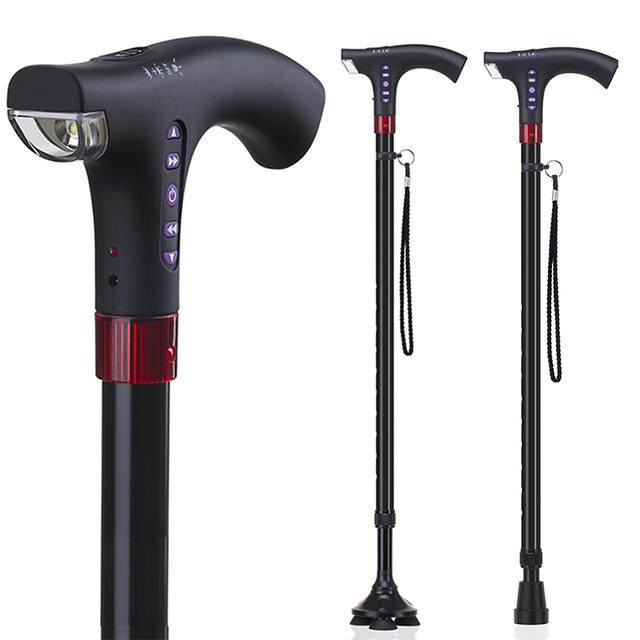 融合现代科技与传统拐杖功能。其功能在单脚拐杖的基础上增加了定位追踪、健康监测、紧急呼叫、导航功能、障碍物检测、多媒体娱乐和照明功能等。