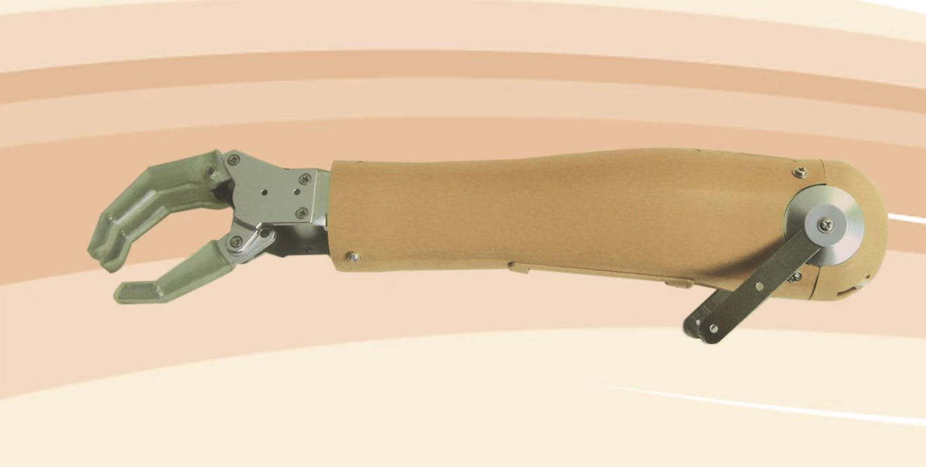 具有间接力源的自身力源型假肢,是主动型手的一种,通过残肢运动以及肩带控制系统完成手的开合功能,实现手部抓握的最基本动作。截肢者配置索控式前臂假肢后,需要通过训练来掌握控制假肢的方式。