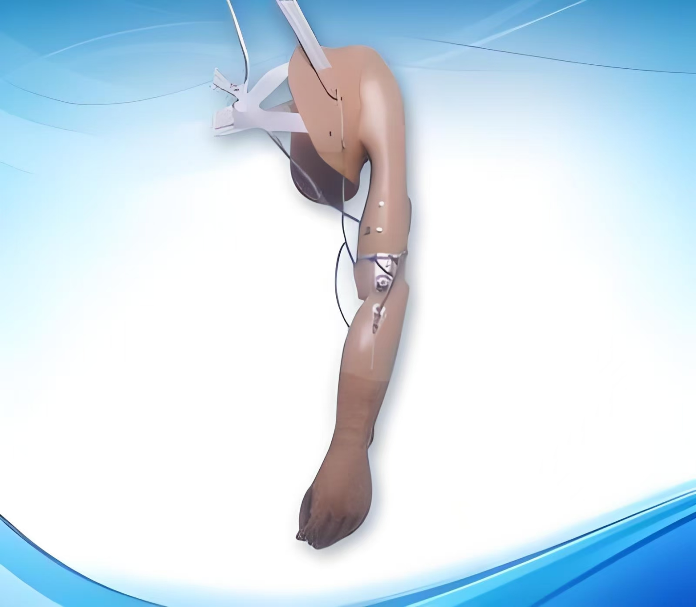 肌电型肘关节离断假肢是为肘关节离断患者设计的高科技辅助设备,通过肌电信号控制假肢动作,帮助患者恢复部分上肢功能,例如:抓取、握持等,提高患者生活质量。