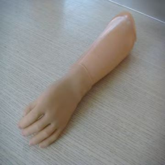 装饰型腕离断假肢通常由美容手套和接受腔组成,外观逼真,重量轻,操纵简便。主要用于弥补肢体外观缺陷和维持肢体平衡,无法自主活动,美容手套的外形、色泽和表面结构都与正常手相似,具有很高的装饰效果。