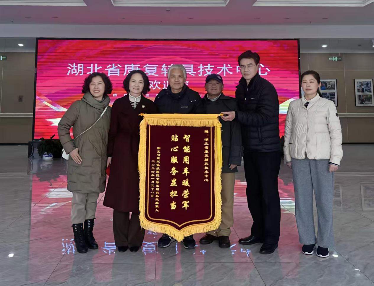 2月3日,省荣军优抚医院副院长邓岚及残疾退役军人代表携锦旗前往中心致谢。锦旗上“智能用车暖荣军,贴心服务显担当”,是对中心始终坚守优抚初心、精准对接需求、提供优质服务的高度认可。