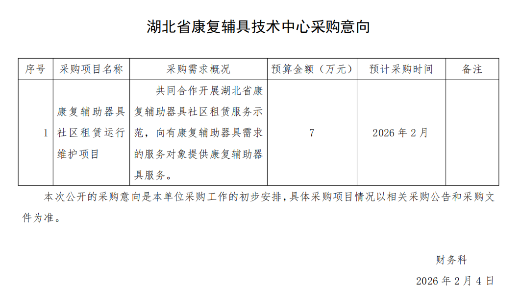 湖北省康复辅具技术中心2026年度单位预算信息公开目录