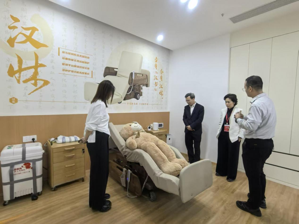 调研组实地察看康复辅具租赁、老年人能力评估、数字化助浴、日间照料综合服务等功能区域,详细了解银发生活体验中心服务模式、适老化体验、康复辅具应用及日常运营管理情况,对其建设运营思路给予充分肯定。